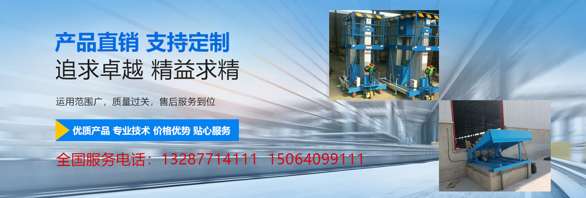 專(zhuān)業(yè)生產(chǎn)升降機(jī),升降平臺(tái),登車(chē)橋等產(chǎn)品,共有八大系列六十多個(gè)品種